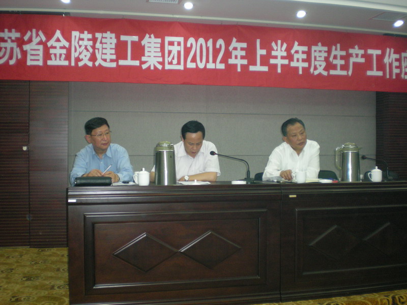 2012年4月29日下午2點整,江蘇省金陵建工集團2012年上半年度生產(chǎn)工作座談會在揚州市瓊都賓館三樓會議室召開。集團公司董事長范廣峰、總經(jīng)理席華武、副總經(jīng)理王重樂、何加森等出席了會議,會議由副總經(jīng)理王重樂主持。 此次會議主要有三個議題:一是由副總經(jīng)理王重樂同志對公司調(diào)整承包合同部分條款進行說明;二是由財務(wù)結(jié)算部經(jīng)理劉富一同志對公司財務(wù)管理制度和企業(yè)所得稅方面的規(guī)定進行講解;人力資源部經(jīng)理翟爽同志對各分公司社會保險繳納工作提出要求;最后由董事長范廣峰同志就集團公司工作中存在的問題進行剖析、說明,并對未來“做大做強”的發(fā)展目標(biāo),做出了明確要求和規(guī)劃性的部署。