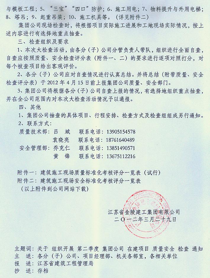 關(guān)于組織開展第二季度集團公司在建項目質(zhì)量安全大檢查的通知