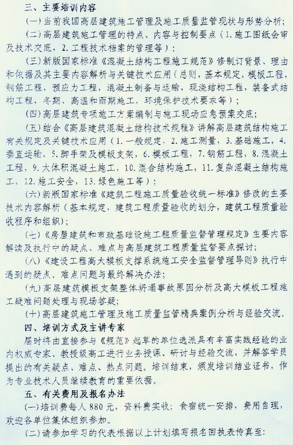 關(guān)于繼續(xù)舉辦“2011年全國(guó)高層建筑施工關(guān)鍵技術(shù)應(yīng)用及施工質(zhì)量監(jiān)督管理業(yè)務(wù)知識(shí)培訓(xùn)班”的通知