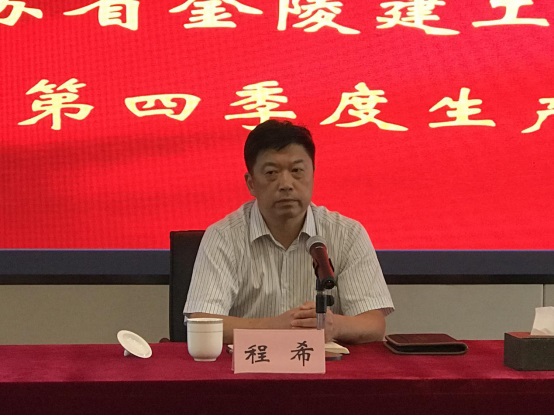 隨后總經(jīng)理程希同志總結(jié)集團(tuán)公司在上一季度中取得的成績(jī)與進(jìn)步,指出存在的問題和隱患。重點(diǎn)強(qiáng)調(diào)在四季度把握好“工期、質(zhì)量、安全”三個(gè)核心點(diǎn),確保在建工程按質(zhì)按期完成交工。