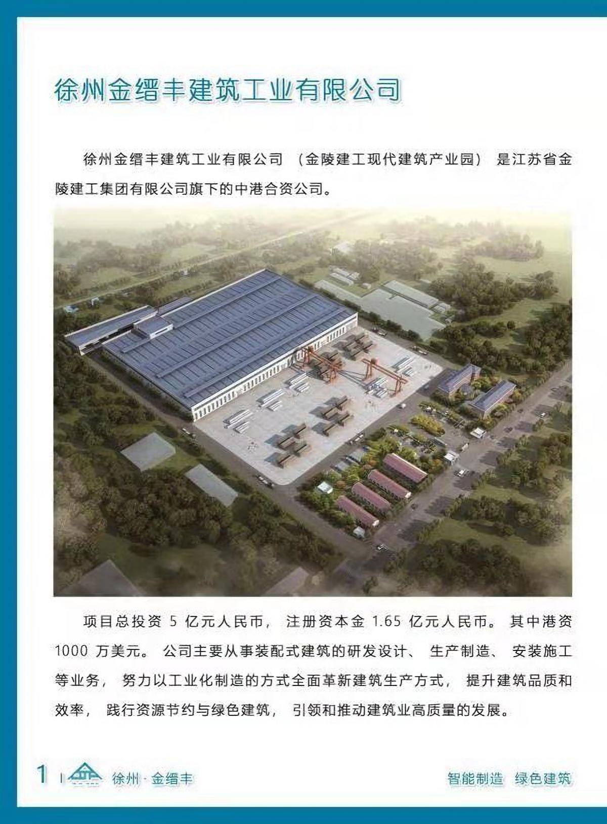 徐州金縉豐建筑工業(yè)有限公司(金陵建工現(xiàn)代建筑產(chǎn)業(yè)園)是江蘇省金陵建工集團(tuán)有限公司旗下的中港合資公司。公司注冊(cè)資金1.65億元人民幣。其中外資1000萬美元。公司將充分發(fā)揮金陵建工集團(tuán)研發(fā)、設(shè)計(jì)、生產(chǎn)、施工、投資一體化的優(yōu)勢(shì),努力以工業(yè)化制造的方式全面革新建筑生產(chǎn)方式,提升建筑品質(zhì)和效率,踐行資源節(jié)約與綠色建筑,引領(lǐng)和推動(dòng)建筑業(yè)高質(zhì)量的發(fā)展。